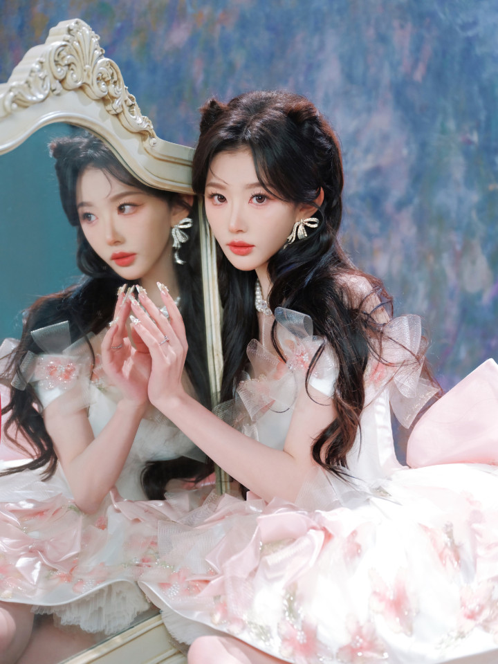 她对着镜子轻抬指尖,微微垂眸时,眼神里带着不谙世事的纯粹,仿佛从童话里走出的甜妹,每一处细节都在诉说着少女心事,甜得让人忍不住心动。